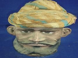 | Description / विवरण | Male head wearing a turban of multi colour, he is dark complexion and bared and moustache on face. The design on turban is Lehria pattern. |