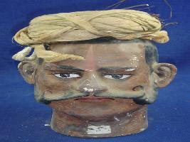 | Description / विवरण | Male head wearing a crimson white turban having jari tied over it, but the turban is almost disrupted. Its complexion is dark, having broad and beard face and sharp nose. |