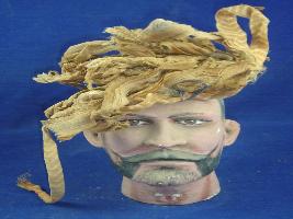 | Description / विवरण | Male head wearing a faded saffron turban with open folds having slightly dark complexion and beard. The beard and eyes are painted with black colour. |