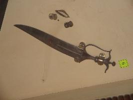 | Description / विवरण | It is made of steel. Tip is pointed. Both sides are sharp. Hilt is having fine grip for holding. Upper and lower portion of hilt have beautiful round cover with rings. |