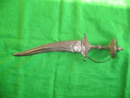 | Description / विवरण | It is made of steel. Fine in shape. Blade is sharp in both side . Tip is pointed. Hilt is having ring for safe the user. Grip has fine carving and design. |