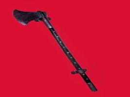 | Description / विवरण | Axe is made of iron with fine grove cutting. Handle in grove ,is fit with the hollow iron sheet and wood. Wooden handle also cover with iron sheet on the bottom. Joining of handle in grove is fine. |