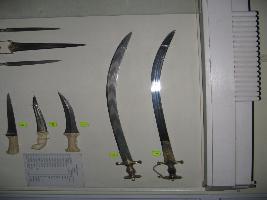 | Description / विवरण | It is made of steel. Its blade is sharp in one side but the top portion tip is available. The blade is curve towards point. Its hilt if fully decorated with gold work. |