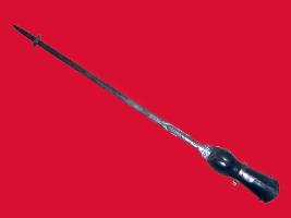 | Description / विवरण | Hilt is hollow but open in one side. It is like semi cylindrical with safeguard. The long top portion is made of flat iron. The tip is pointed, both side sharp. The hilt and sword are joint with pins. |