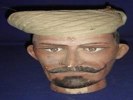 | Description / विवरण | Male head wearing turban of saffron colour and having dark complexion and French bearded face. |