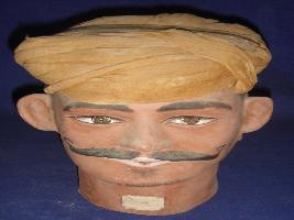 | Description / विवरण | Male head wearing turban of light green colour, having dark complexion and beard and moustache. |