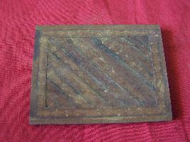 | Description / विवरण | A wooden block having sets of designs with inlay work. |