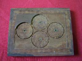 | Description / विवरण | A wooden block having sets of designs with inlay work. |