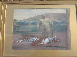| Description / विवरण | It is a sikar photo of M. Ganga Singh ji. In this photo he is holding a single barrel gun and he is in sikar dress. One shooted lion is lying in front of him. |