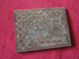 | Description / विवरण | A wooden block having sets of designs with inlay work in floral pattern. |