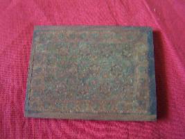 | Description / विवरण | A wooden block having sets of designs with inlay work. |