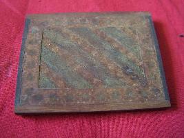 | Description / विवरण | A wooden block having sets of designs with inlay work. |