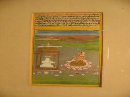 | Description / विवरण | Painting depicting Ragini Bhairavi . Here Female depiction of Ragini is worshipping white Shiva-linga. She is sitting on lotus flower in a pond full of lilly flowers. |