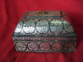 | Description / विवरण | This is an oblong box. It is decorated with zinc inlaid work in floral pattern. |
