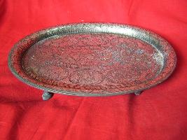 | Description / विवरण | The plate is decorated with floral pattern all over the upper surface. The border is projected outwardly. Decoration is in six layers, in horizontal manner. There is also diaper design. |