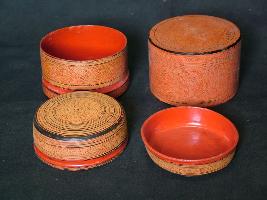 | Description / विवरण | A box with cover. It is enamelled having lacquer work in floral designs. Two bowls are placed inside the box. |