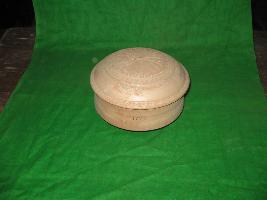 | Description / विवरण | Base is flat. Rest having neck size for giving it to circular and broad shape. Body has scratched lines in top and mid portion. Cap is having multi pateled flower in center and also scratched lines around it. Some circles with the help of dot also designed. |