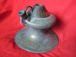| Description / विवरण | It is a Hookah base, carved in circular radiated structure like damru. An inverted lotus petal is shown carved on top and a holder with a pipe in side. |