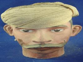 | Description / विवरण | Male head wearing a turban where the turban has many folds and having prominent stylish moustache. |