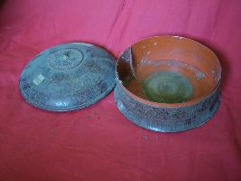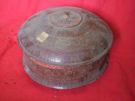 | Description / विवरण | This is a cylindrical box having dome shape with white floral design. |