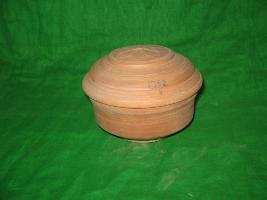 | Description / विवरण | It is made of terracotta. Base is flat but the bottom it is raised outside. Body of pottery has scratched line around it. Cap has geometric design on center of cap. Around the geometric design some semicircular, cutting to each other is carve. |