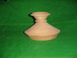 | Description / विवरण | This pottery has hukka base. It is in two part. One part of the pottery is in conical shape and top part is like bowl shape. Conical shape has carving of wavy lines with dotted mark spot. Some of the part is having spiral design around the pottery. |