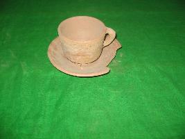 | Description / विवरण | Plate is broken in one side. Cup is having wavy design with dotted spot around the top of the cup. This wavy lines are in the scratched line border. Cup also has handle. Handle is decorated with scratched lines. |