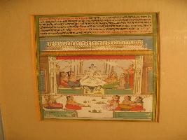 | Description / विवरण | This is depiction of rag bhairav. In this painting in upper ground deity Shiva is being worshipped by six raginis.Shiva is seated over Mrigcharm and holding lotus in two hands. |