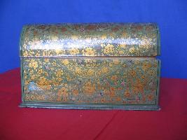 | Description / विवरण | This paper pad is made of wood. It has floral designs with birds in red and black on green background. |