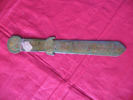 | Description / विवरण | This paper cutter is made of wood, a fine Kashmiri work. It has floral design with birds in red and black colour. It has a green background. |