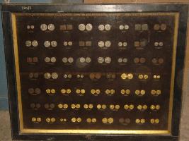 | Description / विवरण | Moulds of coins of class-II Indo scythic kings of North India, framed in one wooden frame. |
