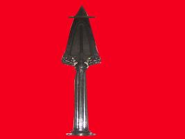 | Description / विवरण | Its upper portion is triangular in shape and lower portion is semi circular. The lower portion has grip and upper portion is decorated. Tip is pointed, upper portion and lower portion has support in joint. |
