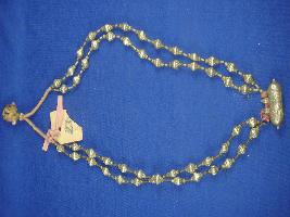 | Description / विवरण | Fifty one silver beads necklace with a cylindrical silver pendant of length 4 cm. with applique design. All the beads are tied with cotton string. |