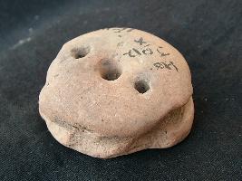 | Description / विवरण | It is a circular shaped Fragment of Toy terracotta object. It has one horizontal groove and three perforation on it. One end is flat and the other end is slightly comical |