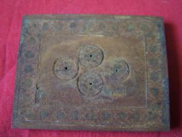 | Description / विवरण | A wooden block having sets of designs with inlay work. |