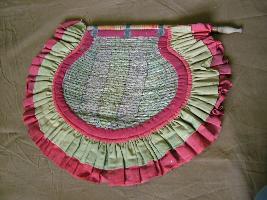 | Description / विवरण | It is semi circular fan made of cloth and straw. It is woven with thread. Its handle has lacquer work. |