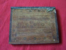 | Description / विवरण | A wooden block having sets of designs with inlay work. |