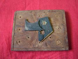 | Description / विवरण | A wooden block having sets of designs with inlay work. |