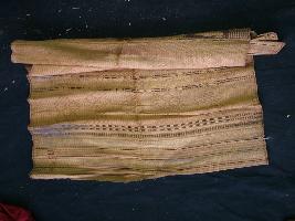| Description / विवरण | A fine straw mat with coloured cloth stitching o the surface. |