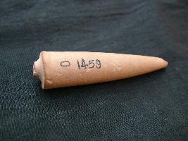 | Description / विवरण | This is a long point object with a socket like pattern on the base or broader part. A small perforation can also be seen at the center of the base. |