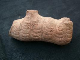 | Description / विवरण | It is an Fragment of animal figurine made with semi circle incised decoration done by nail or snail. Its legs are separated from each other with a round body. |