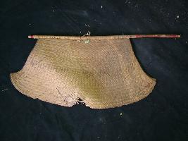 | Description / विवरण | Hand fan without design with a long stick. It has two flappers connected with a single stick. |