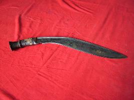 | Description / विवरण | It is a Nepali khukhri. Blade has single sided edge and tip is pointed. Blade has and a deep crescent curve small near the hilt. |