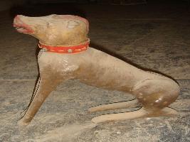 | Description / विवरण | Small stuffed dog, the neck part is broken and it is wearing a red coloured belt in his neck. It is in seated position. |