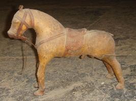 | Description / विवरण | Small stuffed horse, the leather is used to cover the wooden horse, the horse is fully harnessed with leather equipments. |