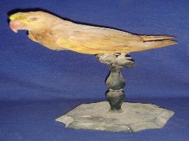 | Description / विवरण | Stuffed body of a parrot of yellow colour, installed on a straight pedestal. |