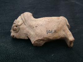 | Description / विवरण | It is a terracotta bull figurine made in appliqu technique. There is no gap between its neck and hump. Its neck is slightly bend. Its tail is partly broken, legs are joined together in pairs. Front legs are broken. Its body is not round. |