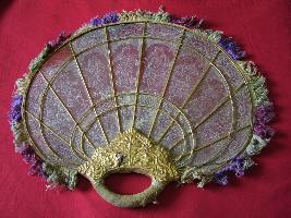 | Description / विवरण | It is a fan in gilt frames with coloured silk edges. Blades are designed with figures of dancing girls. |