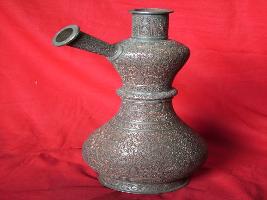 | Description / विवरण | It is a hookah without chilum , cylindrical in shape flattened at the base, provided with long chimney. It is decorated in different bands of medallions, floral design all around. |