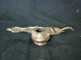 | Description / विवरण | It is panchapatra or water pot for holding holy Ganges water for rituals and worshipping of god. It is in the shape of Abkhora and is provided with a lamp on one side and a long cylindrical stylised holder at the other end; Argha is also shown inside. |
